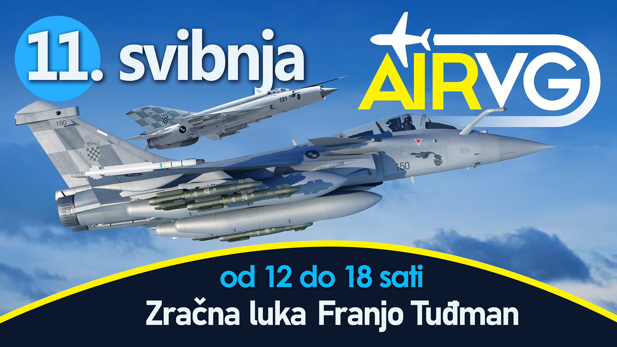 Zrakoplovi Hrvatskog ratnog zrakoplovstava sudjelovat će na zrakoplovnoj priredbi AIRVG2024 – Zrakoplovni dan u Velikoj Gorici koja će se održati u subotu 11. svibnja 2024. od 12:00 do 18:00 sati na prostoru tzv. starog terminala Međunarodne zračne luke dr. Franjo Tuđman.